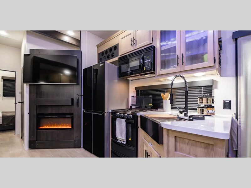 The Forest River Cherokee Timberwolf Black Label destination trailer is ready to camp with residential comfort!
