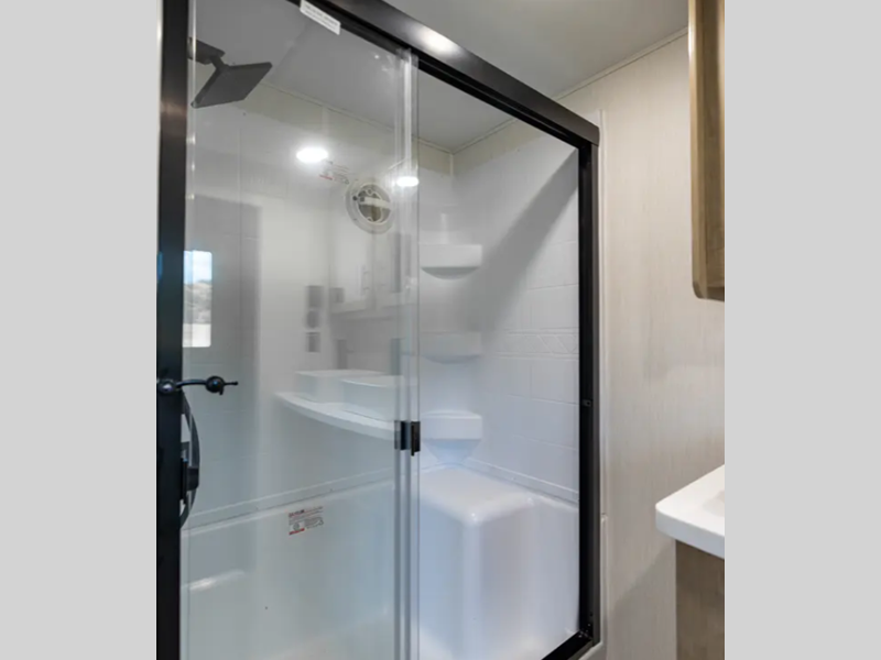 - Blackout Glass, Safety Slam, Friction Hinge Entry Door with Window and Shade Prep (N/A on LP models)