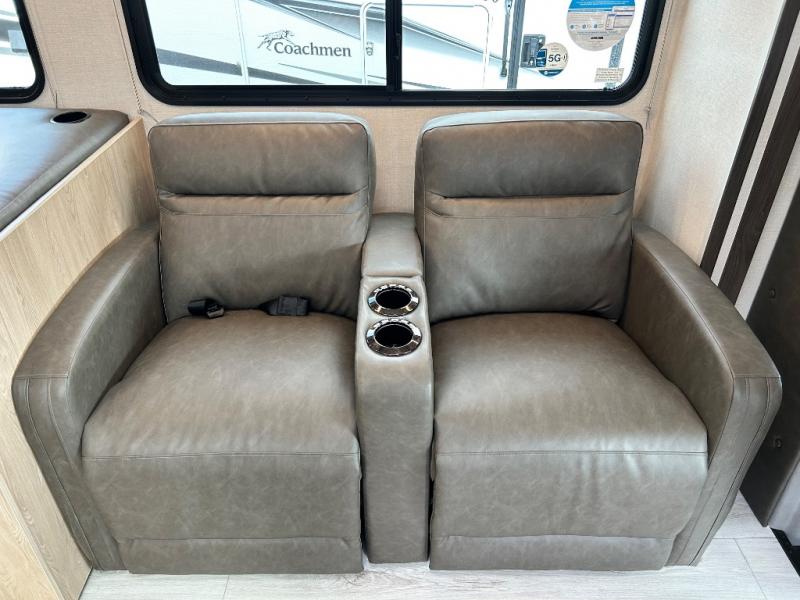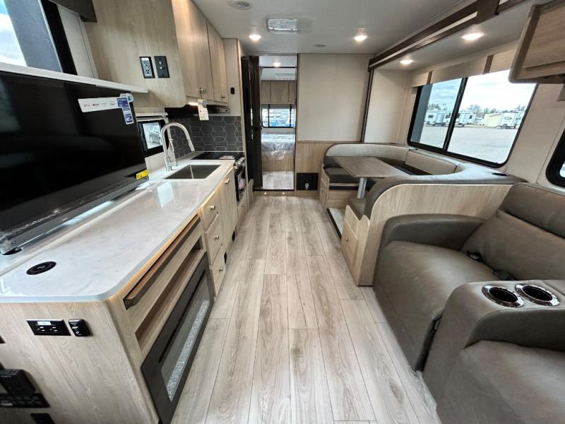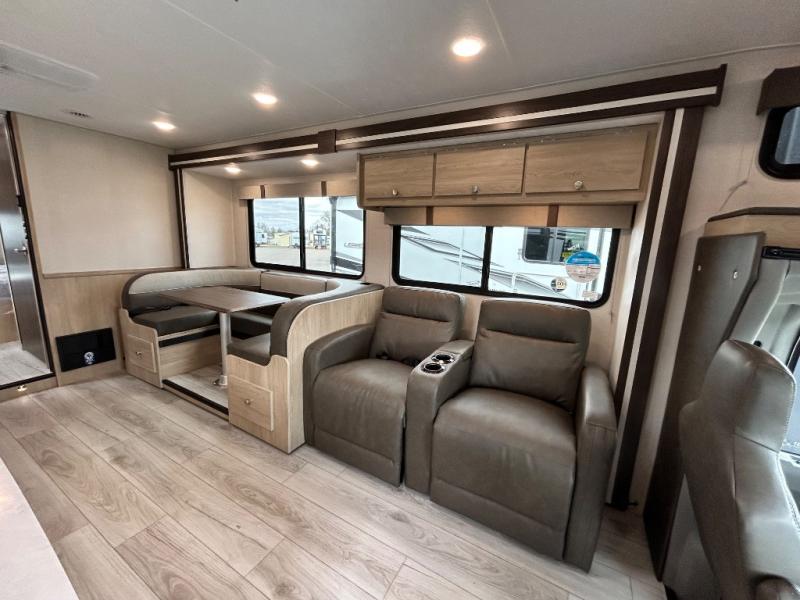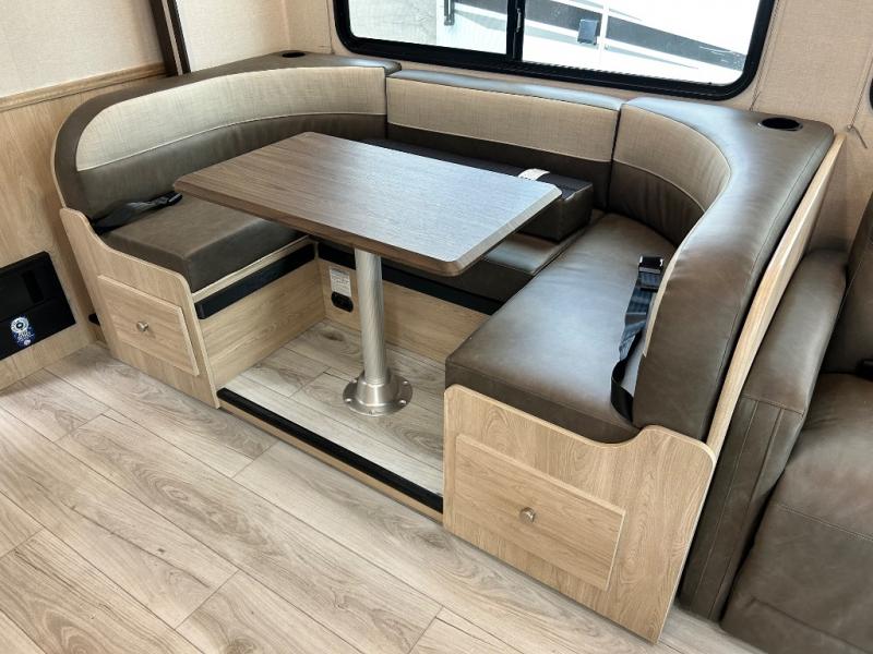 With each Leprechaun Class C gas motorhome by Coachmen you will enjoy "better" interior appointments, like the residential-sized beds, on-demand tankless water heater, and 15,000 BTU A/C. A 7" touchscreen dash radio with CarPlay and a backup monitor will let you easily navigate the open road like pro. The Leprechaun is constructed with composite sidewall and cabover floor construction plus a seamless one-piece roof material for a durable motorhome made to last.