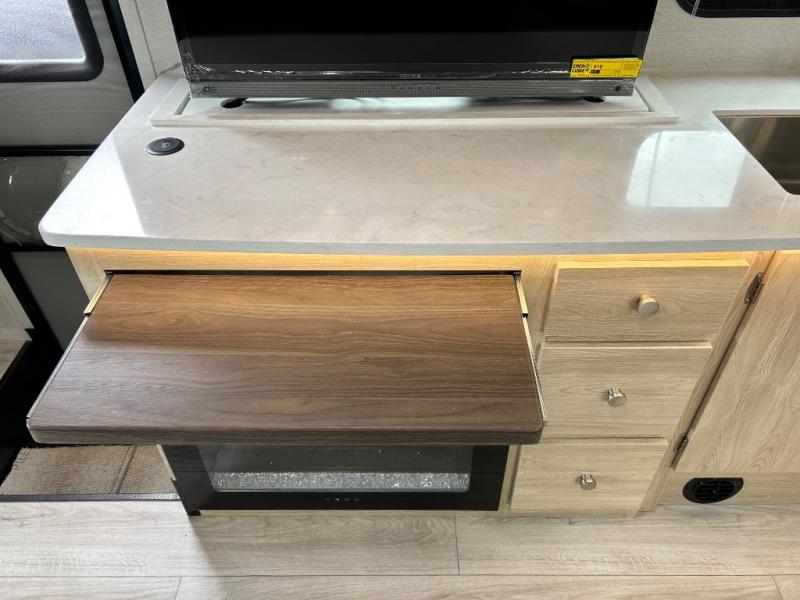 You'll have the time of your life in this Leprechaun Class C gas motorhome! There is a rear private bedroom with a queen-size bed and a wardrobe slide, and the bedroom is right next to the bathroom for convenience. Here you'll find a private toilet and sink with the shower right across the hall, and you can close off this space to make one big bathroom if you want! Out in the main living area, there is a large slide that holds the U-shaped dinette and sofa. These pieces of furniture sit directly across from the kitchen so that you can chat with the chef while preparing meals on the three-burner range or in the microwave. If you enjoy cooking outdoors, you might want to choose the optional camp kitchen!
