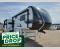 Experience the pinnacle of luxury fifth-wheel living! The front private bedroom has a king bed slide which can be switched for an optional queen instead, a dresser, and a front wardrobe with washer and dryer prep. Start feeling clean and fresh each morning after showering in the 48" x 30" residential shower with a seat in the full bathroom. The kitchen has an island that will make cooking time easy and allow you to mingle with the chef whipping up some scrambled eggs on the four-burner range. The hutch can store your dishes, the pantry can store your canned goods, and the 18 cu. ft. refrigerator will keep your perishables fresh. To experience a quiet time and relaxing time read a book on the rear hide-a-bed sofa or relax in the theater seating with USB charging. And the entertainment center with a fireplace and 50" smart LED TV will keep you entertained! Finally, this unit offers a flexible storage space ideal for keeping all organized and neat, and a patio deck, perfect for spending time outside connecting with nature.